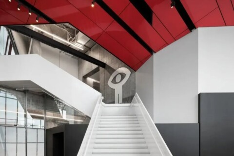 elements guide the transition from exterior to interior. A manicured approach sequence leads to a paved foyer punctuated by circular window openings, reinforcing the project’s curved vocabulary. Internally, the residence is organised across three levels. The ground floor accommodates the primary living areas and kitchen, supporting daily use and social interaction. The upper levels are reserved for private spaces, with the master suite on the first floor and the sons’ bedrooms occupying the second, each interpreted through a distinct yet related aesthetic.