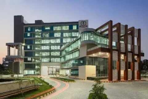 façade establishes the project’s design intent. Curved boundary walls, arched window openings, and softened geometries temper the massing, while a restrained palette of exposed brick, beige finishes, and full-body tiles ensures durability and visual coherence. Classic mouldings and cornice details lend composure to the elevation, while black accents provide contrast and definition. The interplay of texture and tone results in a façade that is expressive yet measured.