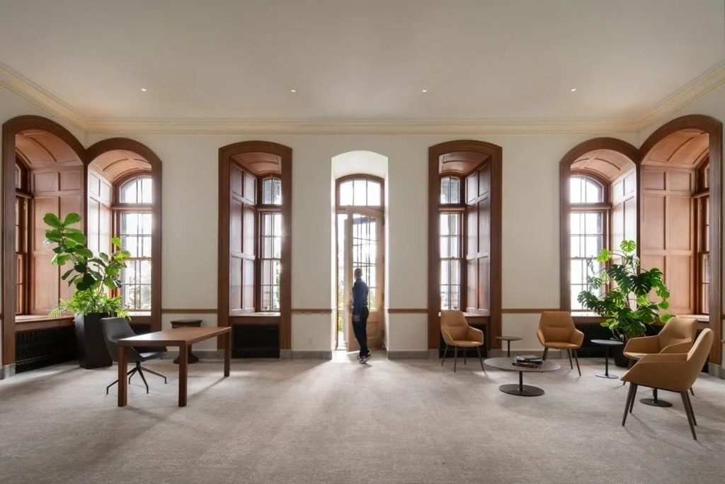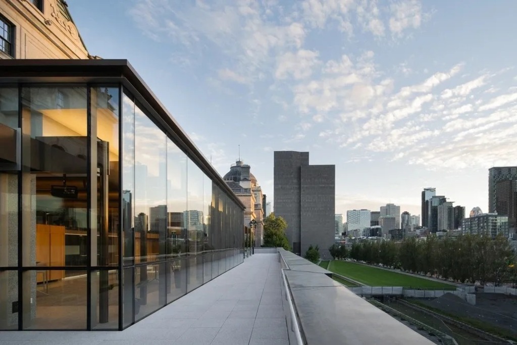 One of the most striking interventions is a contemporary addition replacing a former temporary structure on the terrace. Crafted in brass and granite, the new volume is both refined and respectful of the historic fabric. It offers sweeping views of Mount Royal and downtown Montréal, reinforcing the building’s identity as a bridge between heritage and innovation.