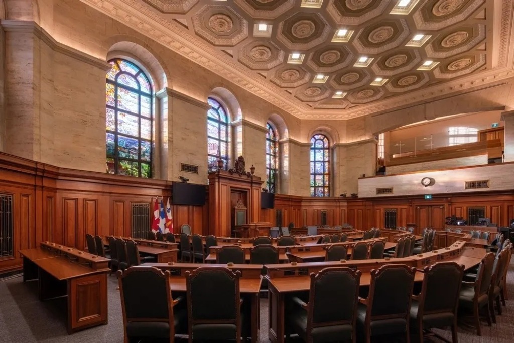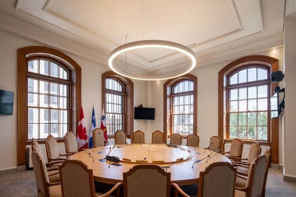 A key design gesture was the reintroduction of natural light to restore spatial clarity and reinvigorate the public’s experience of the building. Walls were opened up, circulation routes redefined, and a new public pathway was created through a sequence of important civic spaces – including the Hall of Honour, the Council Chamber, the Salon de la Francophonie, and the historic Balcon du Discours. This renewed transparency makes the building not only more accessible, but also more symbolic of its democratic function.