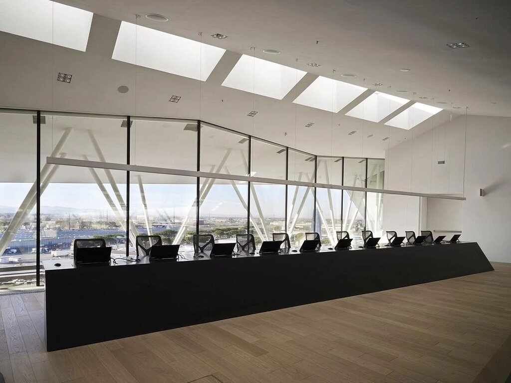 Equally important was the meticulous design of the interior space. The study and design of the interior space were approached as an essential component in and of itself, and thus, not viewed as a parallel project but something integral and necessary for the development of the building as a whole. Indeed, the intention was clear from the very first steps, not to entrust the representativeness of the project to the exterior envelope of the building alone, but to ensure it was the skin of a more complex organism, expressed in a continuous progression of stimuli, and we were fortified by the conviction that the intelligence and creativity of those who work and produce are nourished in their endeavors by the curiosity and complexity of the building rather than the banality of a sterile and shapeless space.