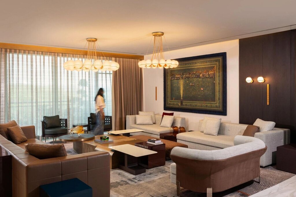 In the private quarters, the design team skillfully addresses the diverse needs of the family. Three distinct bedrooms reflect the younger generation’s personalities, while the parents’ suite embraces comfort and understated luxury. Each room is a carefully crafted blend of materials, from suede upholstery to textured stone, creating a harmonious balance between style and function.