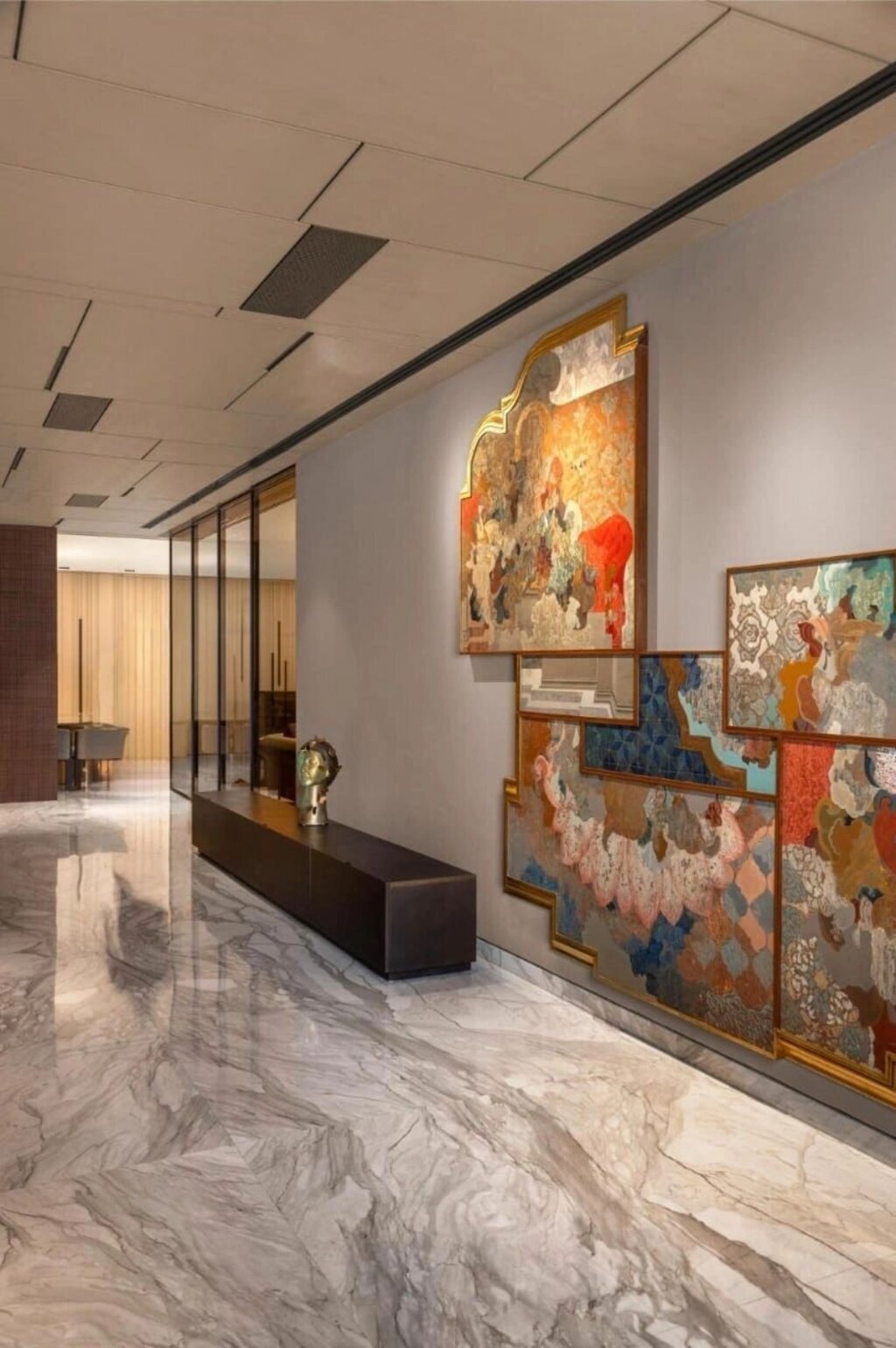 One of the most striking aspects of Apartment AG is how it weaves together the family’s heritage with modern design. Traditional paintings and ancestral artwork add a sense of history and personal connection, creating an eclectic yet grounded environment. Apartment AG is not just a home, but a testament to how thoughtful design can accommodate multiple generations, blending history with modernity and functionality with beauty. This eclectic home proves that when done right, the melding of different visions can create a cohesive, family-centered haven.