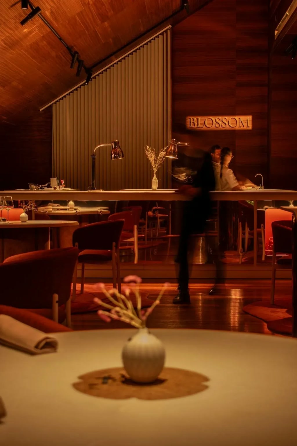 A Michelin-starred restaurant shaped through restrained interventions, custom systems, and scenographic light.