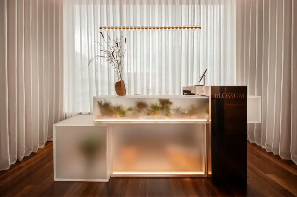 Set on the rooftop of the Museo de Málaga, Blossom occupies an architecturally protected structure of significant cultural value. Recently awarded a Michelin Star (2026), the restaurant has been reconfigured through a precise interior design intervention that prioritises discretion, technical control, and experiential clarity. The project approaches the site not as a blank canvas, but as a sensitive framework within which a contemporary gastronomic concept is carefully inserted.