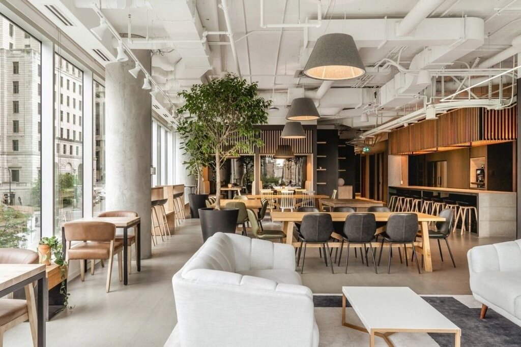 At the heart of this new campus lies the Bistro-Park, a vibrant bistro that acts as a social hub and relaxed workspace, offering breathtaking views of Square Victoria. Strategically positioned at the crossroads of employee movement, this space encourages casual encounters and fosters a sense of community.